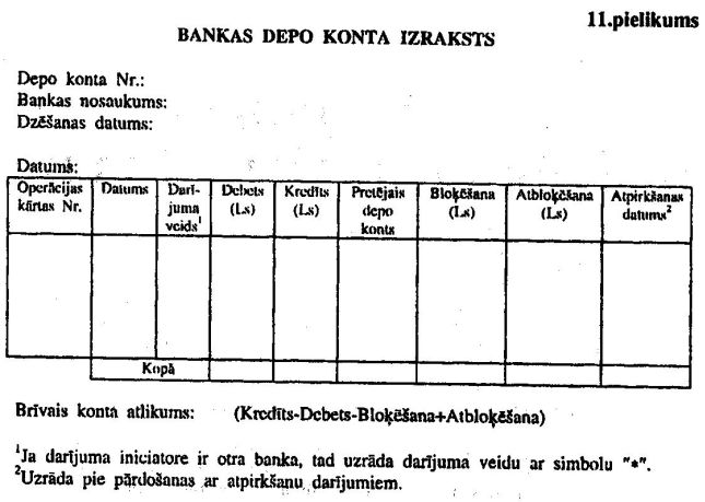 3.2. Bankai ir tiesības saņemt no Latvijas Bankas savu depo kontu izrakstus par veiktajām operācijām un depo kontu atlikumiem (11. pielikums).