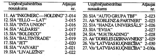 2) SIA “Latgales nafta” Borovkas pag., Krāslavas rajons — piešķirt muitas iestāžu klasifikatora kodu 0735.