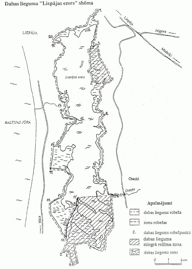 Piezīme. Dabas lieguma "Liepājas ezers" ārējo robežu nosaka Ministru kabineta 1999.gada 15.jūnija noteikumi Nr.212 "Noteikumi par dabas liegumiem".