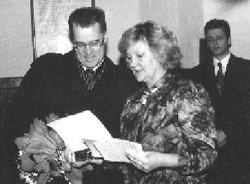 Attēlā: muzeja direktore sarunā ar Valsts prezidentu