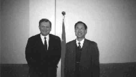 Pēc intervijas ĶTR parlamentā. Autors ar Visķīnas Tautas Pārstāvju sapulces Informācijas departamenta ģenerāldirektora vietnieku Šenu Ūanronu.