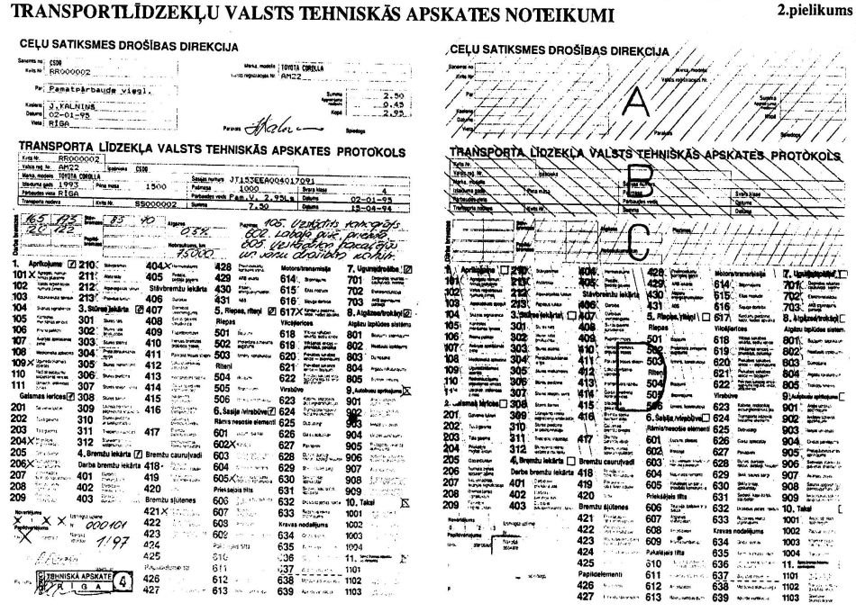Par atklātām viltojuma pazīmēm transportlīdzekļa agregātu numerācijā, vadītāja apliecībā vai reģistrācijas dokumentos jāsastāda noteiktas formas akts un tālāk jārīkojas saskaņā ar CSDD un Policijas departamenta noteikto kārtību.