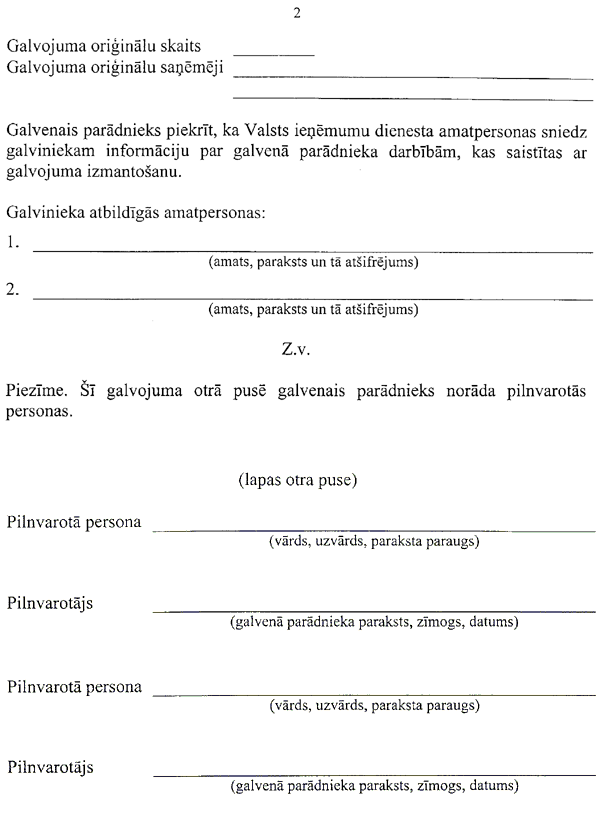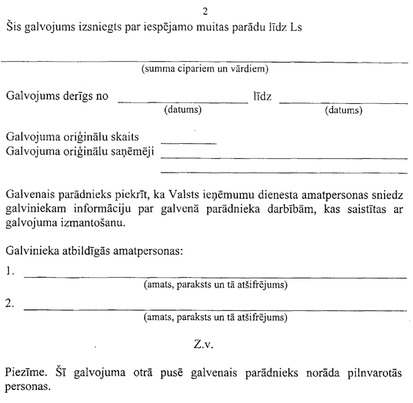 14. Vispārējo galvojumu (1. un 2.pielikums) iesniedz un reģistrē Valsts ieņēmumu dienesta Galvenajā muitas pārvaldē.