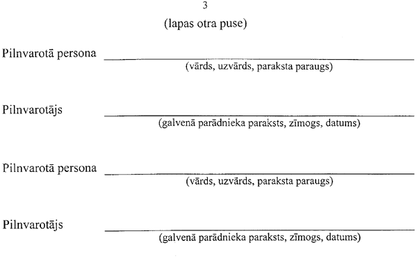 23. Galvenajam parādniekam ir tiesības izdarīt grozījumus pilnvaroto personu sarakstā. Katras pilnvarotās personas iecelšanu vai pilnvaru atcelšanu galvenais parādnieks apstiprina ar parakstu. Galvenais parādnieks ir atbildīgs par ierakstu patiesumu vispārējā galvojuma apliecībā.