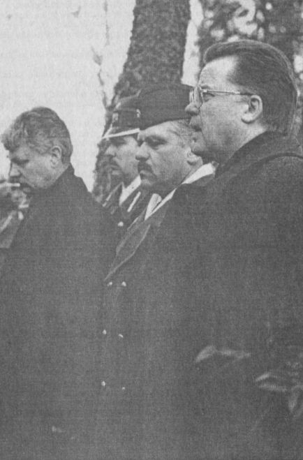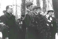 Pie tēlnieku K.Zāles un A.Dzirkala veidotā pieminekļa; iekšlietu ministrs Dainis Turlais, Valsts prezidenta adjutants Raimonds Bluķis, NBS komandieris Juris Dalbiņš, Valsts prezidents Guntis Ulmanis; Valsts prezidenta Gunta Ulmaņa veltījums pulkvedim Oskaram Kalpakam, kopā ar viņu — kapelāns Atis Vaickovskis; piemiņas brīdī apkārtnes skolu audzēkņi, viņu vecāki un audzinātāji Foto: Māris Kaparkalējs, “LV”