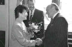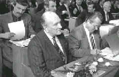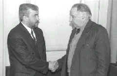Ministru prezidents Andris Šķēle un deputāts, Lauksaimniecības universitātes profesors Ervids Grinovskis |
