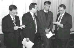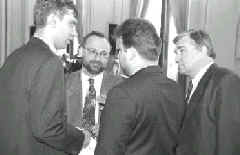 Deputāti Andrejs Panteļējevs, Edvīns Inkēns, Ministru prezidenta biedrs Ziedonis Čevers un deputāts Ivars Ķezbers |