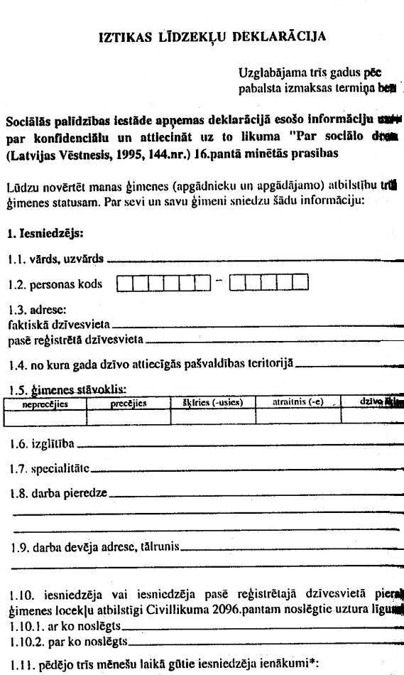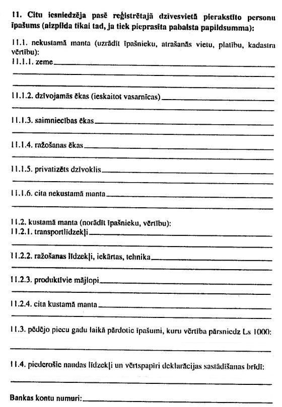 28. Parakstot deklarāciju, persona sociālās palīdzības dienestam dod rakstisku atļauju iepazīties ar savu kontu stāvokli, sociālās apdrošināšanas maksājumiem, nodokļu maksājumiem un īpašuma stāvokli.