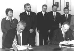savstarpējo līgumu parakstīšanas ceremonija, kurā Norvēģijas un