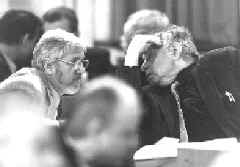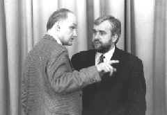 Sēdes starpbrīdī: ministrs Aivars Kreituss, Ministru prezidents Andris Šķēle |