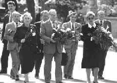 piemiņu, savus ziedu klēpjus noliek Latvijas Saeimas
