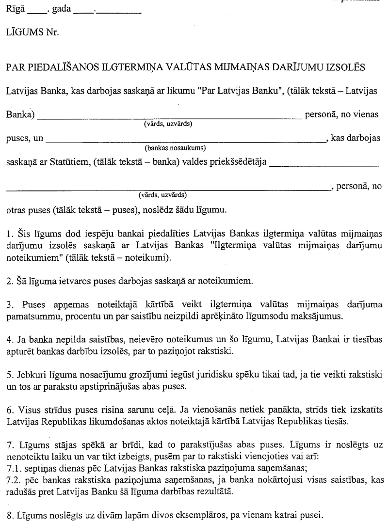 Par "Ilgtermiņa valūtas mijmaiņas darījumu noteikumiem"