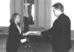 — Man ir tas gods nodot jums manas valsts prezidenta Fidela V.Ramosa siltus sveicienus un vēstuli, saskaņā ar kuru es tieku akreditēta kā Filipīnu jaunā vēstniece jūsu valstī.