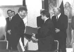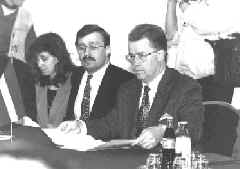 No Lietuvas Republikas puses: Lietuvas Republikas Prezidents Aļģirds Mīkols Brazausks, Ārlietu ministrijas pilnvarotais pārstāvis Albins Januška, Prezidenta ārlietu konsultants Justs Paleckis, Ārlietu ministrijas Politiskā departamenta direktors Vigauds Ušacks, Ārlietu ministrijas Ziemeļeiropas nodaļas vadītāja vietas izpildītājs Roberts Rosins un Prezidenta ārlietu asistente Milda Augulīte.