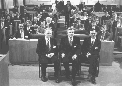 plenārsēžu zālē un asamblejas vadītāji (no kreisās) - asamblejas