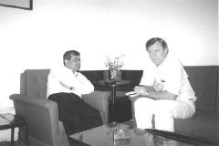 Indijas Republikas Ārlietu ministrijas Austrumeiropas valstu nodaļas vadītājs R.L.Narajans (attēlā pa kreisi) intervijas laikā "Latvijas Vēstnesim"