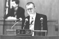 3.lasījumā tika pieņemti likumi — “Obligātā militārā dienesta likums” (66 deputātiem balsojot par, 11 pret un 8 atturoties), “Grozījums Satversmes aizsardzības biroja likumā”, “Grozījums Valsts drošības iestāžu likumā” Foto: Māris Kaparkalējs, “LV”