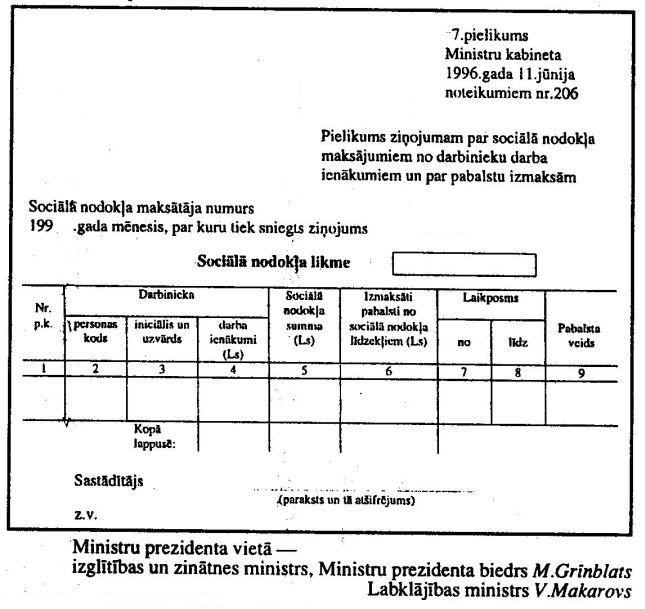 Grozījumi Ministru kabineta 1996.gada 11.jūnija noteikumos nr.206 “Likuma “Par sociālo nodokli” normu piemērošanas noteikumi”