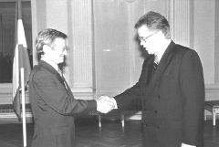 — Jūsu ekselence, es jūs apsveicu kā Nīderlandes ārkārtējo un pilnvaroto vēstnieku Latvijā un vēlu sekmes tālākajā Nīderlandes un Latvijas attiecību uzlabošanas darbā. Mūsu attiecības ir veidojušās lēni un pamatīgi, kā tas ir raksturīgs mūsu tautām. Tas atbilst arī mūsu tautu mentalitātei. Praktiski mūsu starpā nepastāv nekādas pretrunas, nekādas problēmas, ar kurām mums vajadzētu nodarboties. Latvija ir uzsākusi aktīvu darbību, lai virzītu straujāk uz priekšu savas reformas. Šodien pirmoreiz Latvijas vēsturē un tik ātri tika pieņemts bezdeficīta budžets. Un šis budžets ir apliecinājums tiem nopietnajiem nolūkiem, ko Latvija ir apņēmusies veikt, lai iestātos Eiropas Savienībā un NATO.