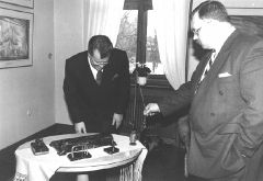 — Cienījamais Valsts prezidenta kungs! Dārgās dāmas un kungi! Draugi! Es jūtos ļoti pagodināts par Valsts prezidenta klātbūtni šajā man visai nozīmīgajā notikumā. Es beidzu savu vēstnieka darbu Latvijā. Esmu šeit nodzīvojis četrarpus gadu. Tie ir bijuši visnotaļ interesanti gadi mūsu valstu — gan Krievijas, gan Latvijas — vēsturē. Tās pirms pieciem gadiem atkal ir kļuvušas brīvas, atkal atguvušas savus vārdus — pēc ilga un sarežģīta režīma perioda, kas jums ilga 50 gadu, bet manā zemē vairāk nekā 70 gadu. Šie pēdējie ir bijuši gaiši gadi, jo tiek celtas jaunas valstis. Arī es tā vai citādi piedalos šajā celtniecībā. Taču tie ir arī sarežģīti gadi. Iespējams, par sarežģītību liecina arī šis rakstāmgalda piederumu komplekts. Tas ir laiks, kad vienkāršajai tautai šo mūsu dzīves revolucionāro pārmaiņu dēļ neklājas viegli. Tādēļ arī kolekcionāram radās iespēja, ja ne par lētu naudu, tad katrā ziņā par vēstnieka ienākumu ietvaros pieņemamu cenu iegādāties lietas, kam ir daudz lielāka vērtība par tīri materiālo. Atklāti sakot, es ilgi domāju. Man tas nebūt nebija vienkāršs lēmums, jo šis rakstāmpiederumu komplekts, kas dāvināts pirmskara Ministru prezidenta biedram ģenerālim Balodim Latvijas Republikas divdesmitajā gadskārtā, ir ļoti vērtīgs arī man. Gan kā kolekcionāram un diplomātam, gan kā cilvēkam, kurš Latvijā nostrādājis tik daudzus gadus. Tā ir vēstures daļiņa, kas man ir saprotama un ļoti dārga. Prezidenta kungs zina, ka es lepojos ar šo lietu savā kolekcijā. Taču, neraugoties uz to, es lieliski saprotu, ka ar visu šīs lietas vērtību, kā arī ar tās garīgo nozīmīgumu man, tā ir daudz dārgāka latviešu tautai. Tā pilnībā pieder latviešu tautas un Latvijas vēsturei. Tādēļ, apliecinot savas jūtas Latvijai, apliecinot mīlestību un cieņu latviešu tautas vēsturei, es gribu nodot šo rakstāmlietu komplektu kā dāvinājumu šim muzejam. Kāpēc tieši šim muzejam? Tāpēc ka šeit es esmu bijis biežāk nekā citos muzejos. Šis muzejs arī veidots, balstoties uz dāvinājumiem. Es gribu, lai mans dāvinājums būtu papildinājums šī muzeja kolekcijai. Es šeit vienmēr esmu juties ļoti mājīgi. Te vienmēr esmu izjutis īsteni latvisku noskaņu. Esmu patiešām lepns un pagodināts ar prezidenta kunga klātbūtni šajā ceremonijā. Arī tāpēc, ka šī celtne saistīta ar viņa ļoti pazīstamā, kaut arī Latvijas vēsturē ne viennozīmīgi vērtējamā senča un priekšgājēja vārdu. Liels paldies! Es gribētu cerēt, ka ne tikai tas vien paliks atmiņā par manu uzturēšanos Latvijā. Liels paldies visiem!