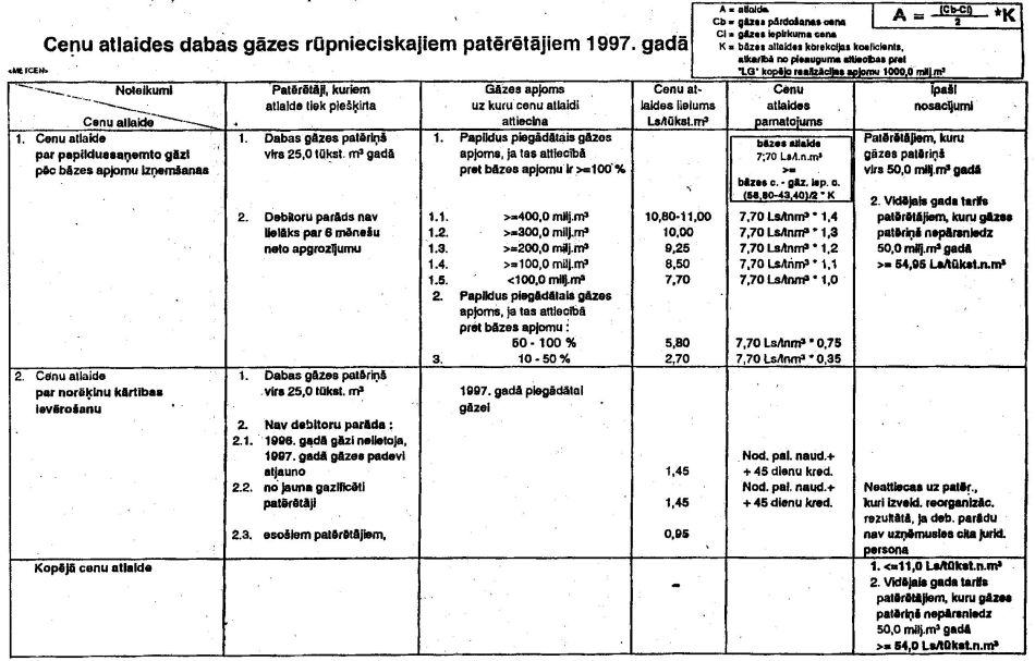 | cenu atlaide | 10,00 | Ls/tūkst.n.m3 |