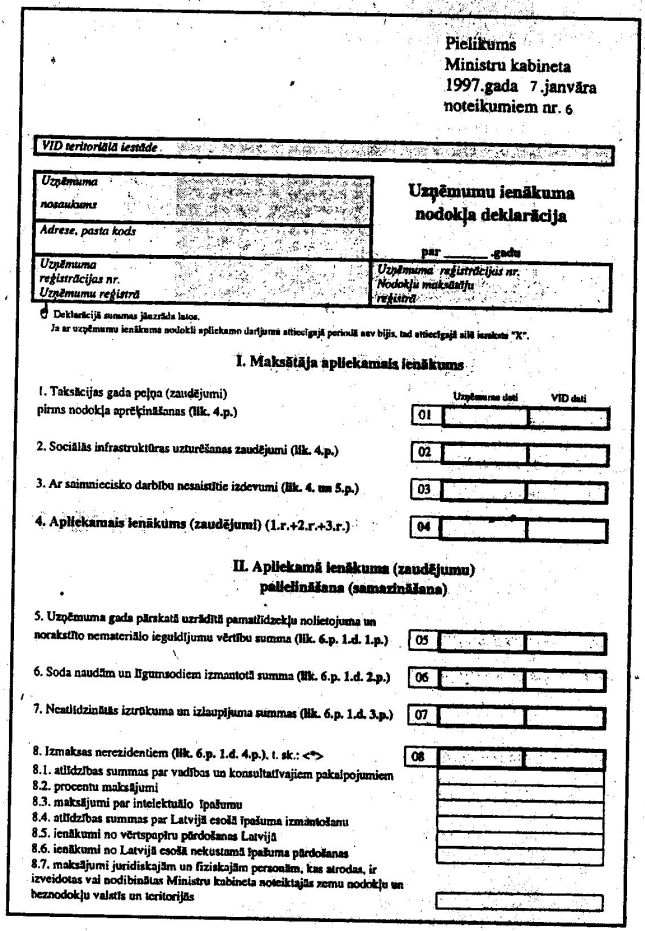 1. Apstiprināt uzņēmumu ienākuma nodokļa deklarācijas veidlapas paraugu saskaņā ar pielikumu.