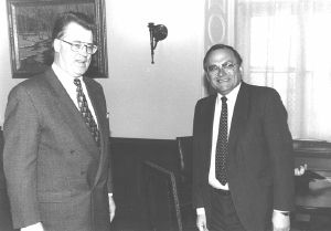 Vakar, 24.februārī, pie Valsts prezidenta Gunta Ulmaņa uz darba sarunu ieradās Saeimas priekšsēdētājs Alfreds Čepānis. Abi — tikko atgriezušies no atbildīgām vizītēm: Valsts prezidents — no Turcijas Republikas, Saeimas priekšsēdētājs — no Krievijas Federācijas. Foto: Māris Kaparkalējs, “LV”