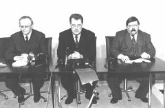 Guntis Ulmanis, Latvijas Republikas Valsts prezidents, Valdis Birkavs, ārlietu ministrs, Andrejs Krastiņš, aizsardzības ministrs,— preses konferencē Rīgas lidostā, tūlīt pēc Turcijas vizītes