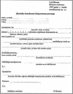 1997.gada 11.martā Noteikumi nr. 93
