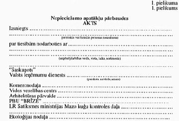 — “Nepieciešamo apstākļu pārbaudes akts” (1. pielikuma 1. pielikums), kas saskaņots ar attiecīgajiem dienestiem.