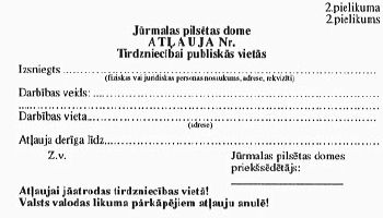 “Atļaujas tirdzniecībai publiskās vietās” nozaudēšanas gadījumā dublikāts netiek izsniegts. Jauna “Atļauja tirdzniecībai publiskās vietās” tiek izsniegta vispārējā kārtībā pēc nodevas nomaksāšanas.