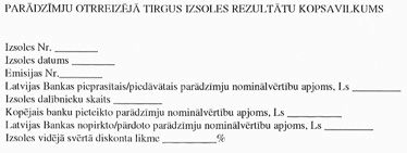 2.10. Ja banka pārdod parādzīmes Latvijas Bankai, pēc izsoles noslēguma tās tiek norakstītas no bankas parādzīmju konta un ieskaitītas Latvijas Bankas parādzīmju kontā. Vienlaicīgi nauda tiek norakstīta no Latvijas Bankas konta un ieskaitīta attiecīgās bankas korespondentkontā Latvijas Bankā.