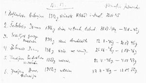 Mums te bija arī vāciešu bērni, kuri trīsdesmit devītā gadā repatriējās. Es atminos, bij Kālerts tāds, viņam spoguļu fabrika piederēja. Viņam bij dēls Gerds, tas bij vienaudzis ar Līviju un manu mazāko brāli Jāni. Un bij tāds mazs puišelis, kādi divi trīs gadi vecs, tāds Hanss. Nu un, tā kā mēs abi divi apmēram vienādā līmenī vāciski runājām, tad es nekautrējos ar viņu... mēs abi tad staigājām ar to Hansu un vāciski runājām. Ar citiem, lielākiem, dabīgi, ka es kautrējos, jo es neko labi to valodu nebiju apguvusi. Nu un tad mums vēl te bij piektā dzīvoklī ar vācieši... Helmūts un Kurts. Tie ar aizbrauca.*