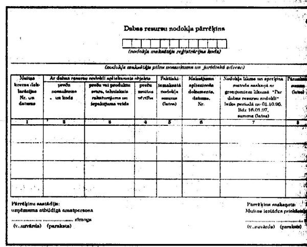 • ja pārmaksātā dabas resursu nodokļa summa tiek apliecināta un nodokļu maksātājs vēlas izmantot to, ievedot jaunas preces, tad VID teritoriālā iestāde, kur viņš ir reģistrēts kā nodokļu maksātājs, izsniedz izziņu, kas noformēta pēc parauga 1.pielikumā.