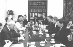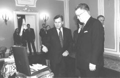 Guntis Ulmanis sasveicinās ar Polijas premjerministru Vlodzimežu Cimoševiču
