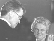 Mēs turpinām vienu no mūsu Latvijas valstiski nozīmīgākajām pirmskara tradīcijām — pateikties un apbalvot cilvēkus lielu valsts svētku priekšvakarā. Apbalvot tos, kuriem vislielāko uzticību dāvā sabiedrība, darba kolēģi, draugi, jo visi jūs šodien saņemat apbalvojumu par savu mūža darbu pēc atzītu Latvijas sabiedrības pārstāvju — jūsu līdzpilsoņu — ierosinājuma.