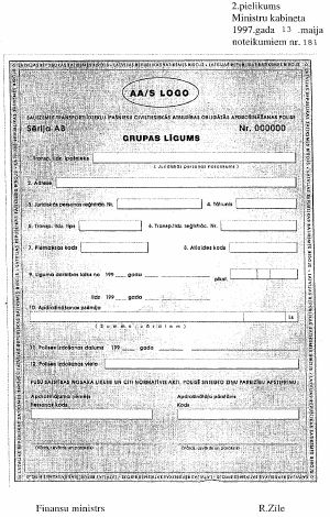 15. Grupas līguma polises veidlapas attiecīgajās ailēs jāieraksta šāda informācija: