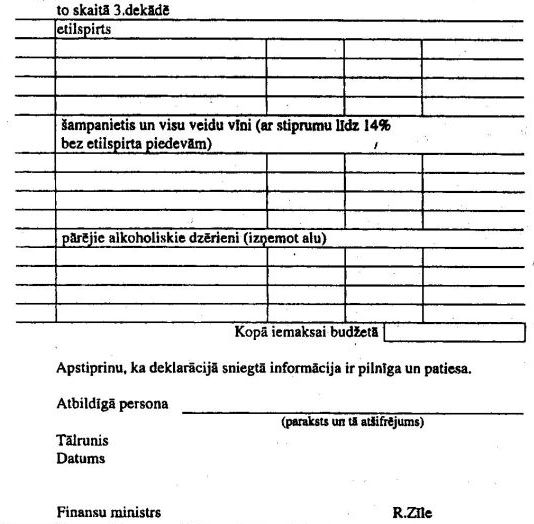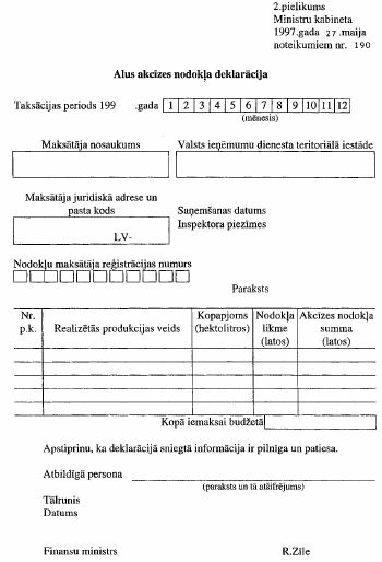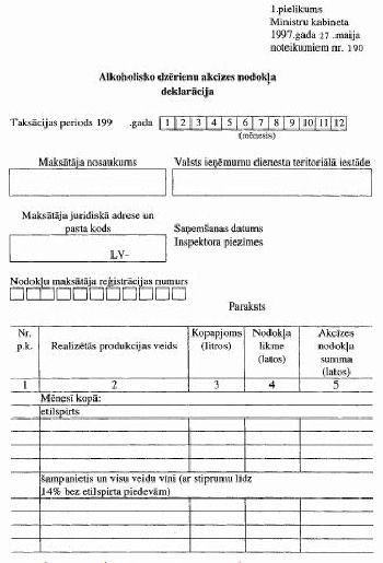 Apstiprināt alkoholisko dzērienu akcīzes nodokļa deklarāciju un alus akcīzes nodokļa deklarāciju (1. un 2.pielikums).