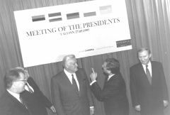 Vakar preses konferencē pēc Igaunijas, Latvijas, Lietuvas, Polijas un Ukrainas prezidentu Tallinas tikšanās Igaunijas prezidents Lennarts Meri vispirms nolasīja piecu prezidentu kopīgo komunikē.