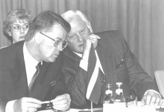 — Es abus šos jautājumus vērtētu kā vienlīdz svarīgus. (Lennarta Meri emocionāla replika, negaidot angļu tulkojumu: Es jums, prezident Brazausk, pilnīgi piekrītu. Redziet, mēs tik ilgi esam strādājuši kopā, ka es jau saprotu jūsu lietuviešu valodā teikto.) Nenoliedzami, ārkārtīgi svarīgi ir Baltijas valstu drošības jautājumi. Tas ir pāri visam, un būtībā nav nemaz tik svarīgi, kuru no tām pārējām problēmām mēs minam kā prioritāti. Otrkārt, mēs pārrunājām Baltijas valstu sadarbību plašā spektrā, kā arī mūsu ārpolitikas koordināciju. Mēs arī pārrunājām sadarbību ekonomikas jomā, un šie jautājumi nebija mazāk svarīgi par mūsu drošības problēmām. Taču, kā jau teicu, šie jautājumi ir savstarpēji cieši saistīti.