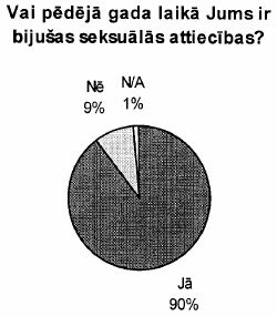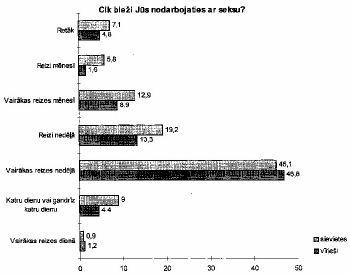 Novērtējot respondentu atbildes uz jautājumiem par viņu pašreizējo seksuālo dzīvi (skat. 40.-45. zīm.), ir manāma ievērojama sakritība starp sieviešu un vīriešu atbildēm, kas liek domāt, ka iegūtie dati patiesi atspoguļo reālo situāciju jeb mūsu sabiedrības intīmās dzīves tendences.
