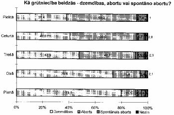 Sieviešu atbildes uz jautājumiem par grūtniecību liecina, ka vairāk kā puse no bijušajām grūtniecībām nebija plānotas, it īpaši tas attiecas uz trešo, ceturto, piekto grūtniecību. Tajā pašā laikā kontracepciju pirms iestājās grūtniecība lietoja tikai nelies skaits sieviešu. Piemēram, pirms iestājās ceturtā grūtniecība tikai katra trešā sieviete lietoja kontracepciju — 26% dzemdes spirāli, 22% kalendāro metodi, 14% prezervatīvu, 13% pārtraukto dzimumaktu, 12% hormonālās pretapaugļošanās tabletes, 5% skalošanu.