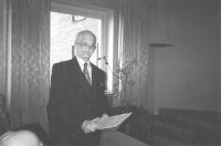 “Grāmatu drauga” radītājam un ilggadējam vadītājam šogad jau 94 gadi. Helmars Rudzītis (attēlā pa labi) neatbrauca uz izstādes atklāšanu. Taču rakstīja, ka atklāšanas brīdī viņš domās bija Misiņa bibliotēkā.