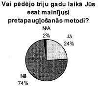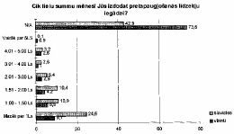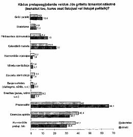 Pretapaugļošanās līdzekļus visbiežāk iegādājās aptiekā (ap 80%), vairākums gadījumos izdevumi par tiem mēnesī svārstās 1–2 Ls robežās. Tomēr salīdzinoši sievietes par tiem izdod aptuveni 2 reizes vairāk naudas.