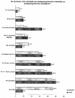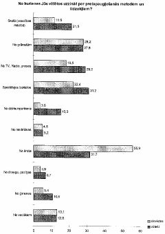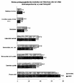 Kā galvenos informācijas avotus no kurienes var uzzināt par kontracepciju, sievietes min: ārstu, grāmatas, masu saziņas līdzekļus, draugi un paziņas. Tā kā tikai neliels skaits vīriešu apmeklē profilaktiskās uroloģiskās apskates, tad vīrieši informāciju par kontracepciju, galvenokārt, iegūst no grāmatām, no masu saziņas līdzekļiem, no draugiem, paziņām (skat. 96.zīm.).