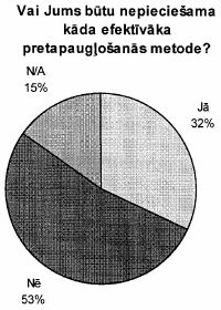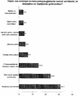 No visiem respondentiem, kuriem ir bijušas seksuālas attiecības, nekad nevienu kontracepcijas metodi nav lietojuši 10% vīriešu un 7% sieviešu.