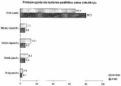 61% no visām sievietēm piekrīt, pretapaugļošanās tabletes kliedē bailes par nevēlamu grūtniecību, bet 56% sieviešu piekrīt, ka pretapaugļošanās tabletes ir viegli lietot un tās ir efektīvas.