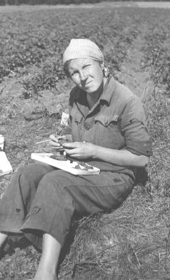 Vācu okupācijas laikā strādāju bankā, kas toreiz saucās Madonas Finansu kase. Mainoties varām 1944.gada rudenī, Finansu kase kļuva par PSRS Valsts bankas Madonas nodaļu. Bankas darbs mani nesaistīja, tāpēc izlēmu darbu bankā atstāt un meklēt sirdij tuvāku darbu, jo esmu beigusi Latvijas Universitātes Vēstures fakultāti.
