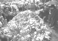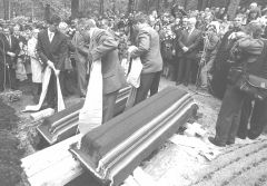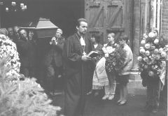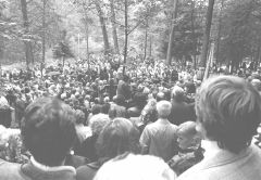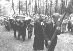 Lielais Rakstnieku savienības autobuss, daži mazāki, rindiņa vieglo automašīnu — pavadītāju pulks, kas izbrauc no Rīgas, nav pārāk liels. Toties pie Neretas baznīcas savu Rakstnieku sagaida Tauta. Cik pareizs gan bijis lēmums apglabāt Jaunsudrabiņu dzimtajā pusē! Atvadu sveicienus māj gan ģimenes kartupeļu tīrumā, gan vīri malkas laukumā. Braucēju ir daudz, bet pavadītāju vēl vairāk.