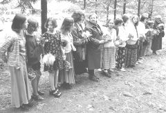Ķišku kapos gājiens virzās uz kalniņu, kur atdusas Jāņa Jaunsudrabiņa vecvecāki un citi tuvi cilvēki. Visu ceļu apmirdz sveču liesmiņas skolas bērnu plaukstās. Dzied sieviešu koris “Līga” un valsts kora “Latvija” vīri.